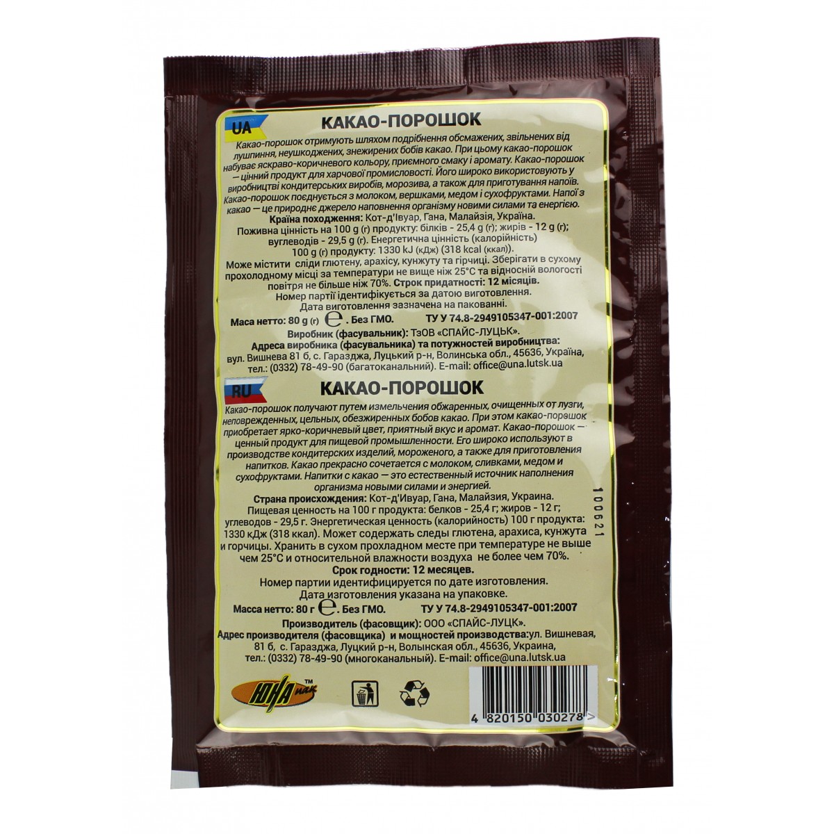Какао порошок темне 80г/Юна